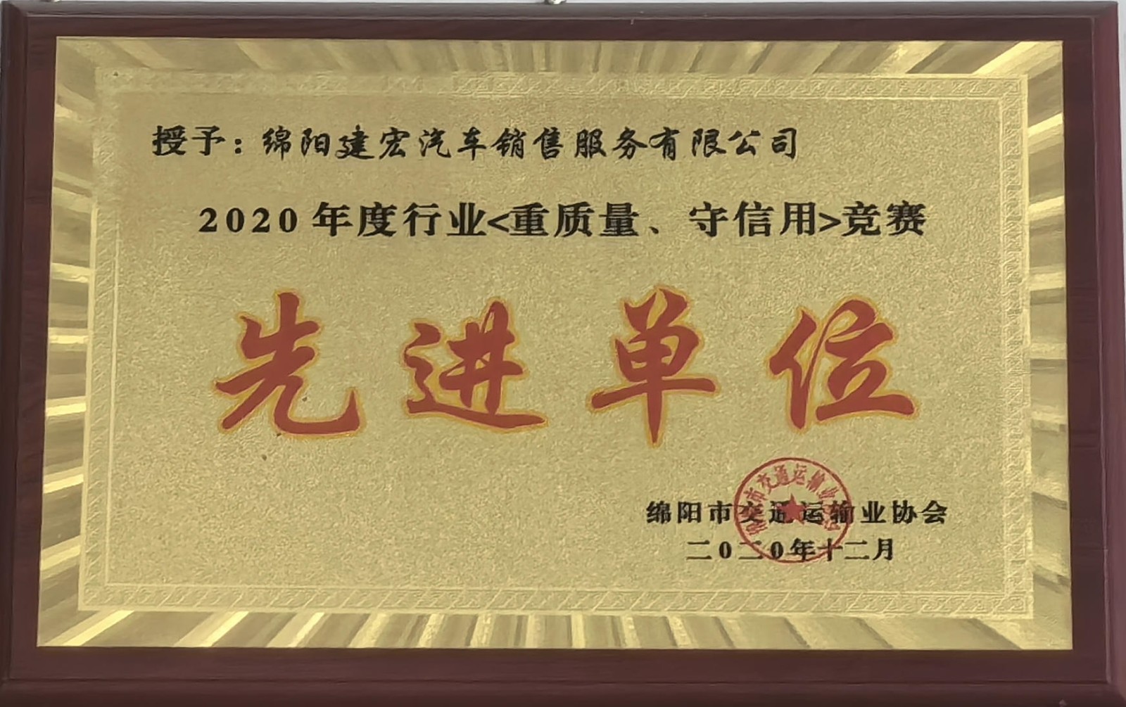 2020年 榮獲綿陽市行業(yè)<重質(zhì)量、守信用>先進(jìn)單位