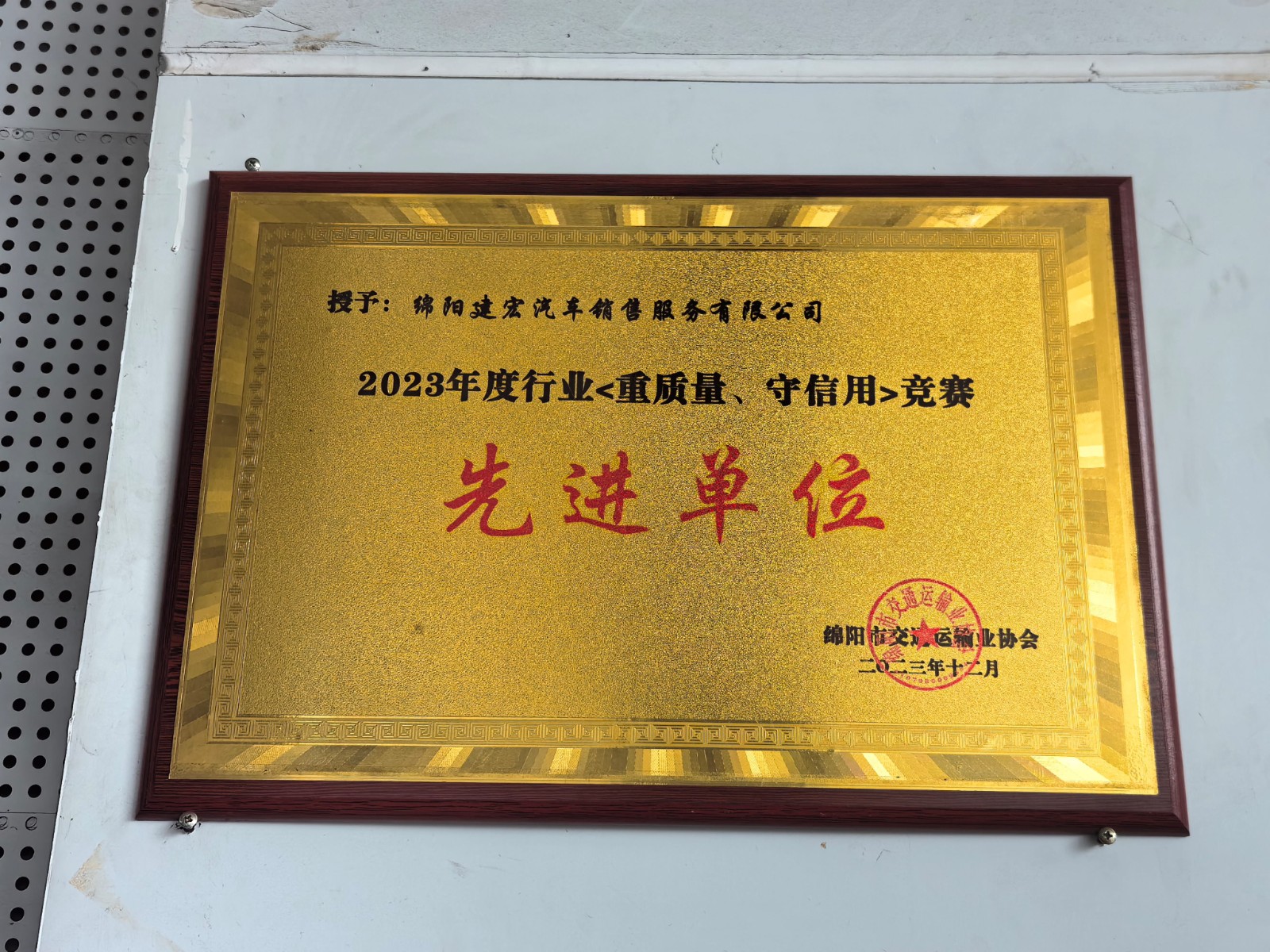 2023年 榮獲綿陽市行業(yè)<重質(zhì)量、守信用>先進(jìn)單位