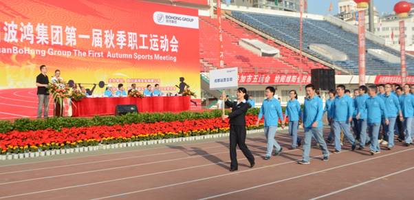金秋十月,清風送爽。波鴻集團第一屆秋季職工運動會于2012年10月31日在綿陽市南河體育中心順利舉行,集團黨委書記張健、集團工會主席叱利華、集團總裁助理謝敏、集團總裁助理周其偉、汽車事業(yè)部總經理蹇平、房產事業(yè)部總經理任思紅等領導出席開幕式,各分子公司負責人、參賽運動員、職工代表共500余人參加此次運動會。