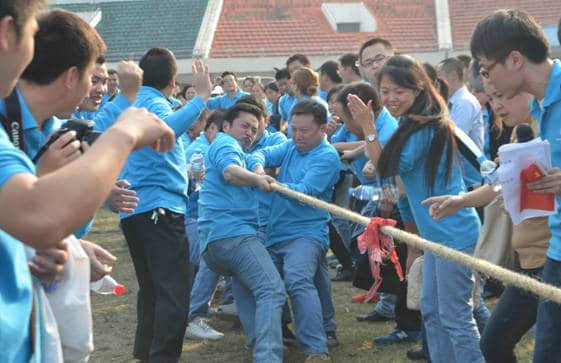 為了團隊的榮耀,精誠團結、相互協(xié)作、互相包容、敢于拼搏的團隊精神得以完美的體現(xiàn)。在滾輪胎、同心協(xié)力、趣味接力、拔河等項目中,贏了,大家歡呼雀躍;輸了,互相勉勵,誓言明年再來。健兒們努力著,而拉拉隊員們高昂的加油聲回蕩在激情的賽場上。