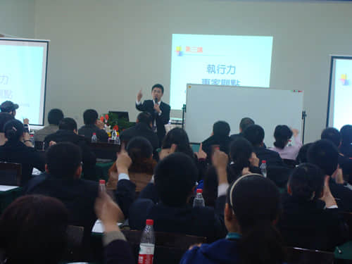 成立儀式后,培訓(xùn)中心和國內(nèi)最有實力的余世維博士旗下名仕碩學(xué)領(lǐng)袖學(xué)院合作,特邀臺灣地區(qū)著名執(zhí)行力培訓(xùn)專家王時成老師為大家講授《如何避免執(zhí)行力的12個陷阱》課程。王老師為我們重點講述:提高執(zhí)行力對團(tuán)隊目標(biāo)和個人目標(biāo)實現(xiàn)的重要意義;提高團(tuán)隊執(zhí)行力要從哪幾個方面入手;如何在團(tuán)隊中創(chuàng)造執(zhí)行的文化,執(zhí)行的氛圍;提高執(zhí)行力就是目標(biāo)導(dǎo)向、全力以赴、不折不扣;什么樣的制度流程能支持到企業(yè)目標(biāo)計劃的有效執(zhí)行;如何通過加強(qiáng)目標(biāo)管理、過程管控,來提高團(tuán)隊執(zhí)行力。