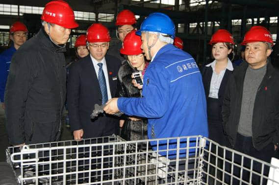 隨后,李愛蘭副行長一行參觀了好圣一期機加車間、鑄造車間、后處理車間,聽取了宋總對生產設備、生產工藝、生產流程的詳細介紹。