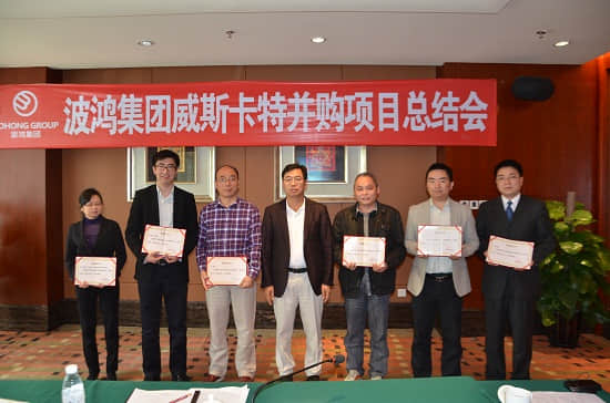 2011年9月13日,集團(tuán)與加拿大多倫多證券所上市公司、擁有110年經(jīng)營歷史的威斯卡特工業(yè)集團(tuán)簽署并購諒解備忘錄,以2.45億美元(包括購買股權(quán)和承擔(dān)債務(wù))100%收購該公司在美國、加拿大、匈牙利、中國的七家工廠和一個研發(fā)中心,這也成為中加歷史上最大的一次產(chǎn)業(yè)并購、中國汽車行業(yè)第四大并購案、2012年中國汽車工業(yè)最大的并購案。2012年6月1日,簽署了正式并購協(xié)議。2012年7月13日,項目新聞發(fā)布會在成都舉行。2013年3月28日,波鴻集團(tuán)并購?fù)箍ㄌ毓I(yè)集團(tuán)順利完成交割。這是波鴻集團(tuán)實現(xiàn)百年發(fā)展愿景歷程上邁出的重要一步,也標(biāo)志著威斯卡特并購項目得以順利完成。