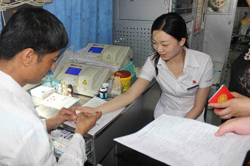 醫(yī)護(hù)人員為職工驗(yàn)血