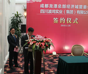 簽約儀式上,中共成華區(qū)委書記、區(qū)人大常委會主任何立斌同志代表區(qū)委、區(qū)政府致辭,向項(xiàng)目的簽約表示了熱烈祝賀,向入駐企業(yè)表示了熱烈歡迎。希望波鴻集團(tuán)高起點(diǎn)定位、高標(biāo)準(zhǔn)建設(shè)、高速度入駐,為地方經(jīng)濟(jì)發(fā)展多做貢獻(xiàn);全區(qū)各相關(guān)部門將以最大的誠意、盡最大的努力,為企業(yè)提供“零距離、零差錯(cuò)、零干擾”的服務(wù),營造良好的發(fā)展環(huán)境。