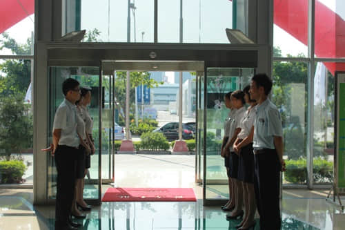 我店員工列隊(duì)等待曹總和楊總到來