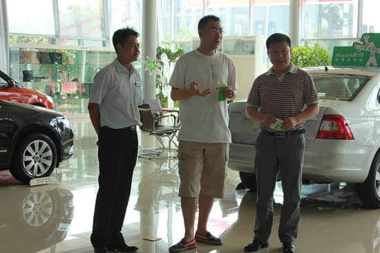 24日下午13:30,曹總一行在汽車事業(yè)部總經(jīng)理蹇平同志和德陽片區(qū)總經(jīng)理石麗翔同志的陪同下來到了斯柯達(dá)4S店。一進(jìn)展廳,曹總看到剛上市的速派和原裝進(jìn)口的yeti已經(jīng)整潔地?cái)[放在主展臺(tái)上表示非常的欣慰,親切地與銷售部員工一起分析目前的市場情況,并介紹了上海大眾斯柯達(dá)西區(qū)下半年的發(fā)展計(jì)劃。