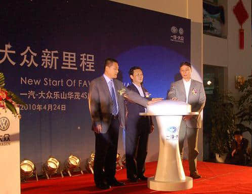 2010年4月24日,一家嶄新的一汽-大眾4s店在樂山市通江王河園天牛汽車城盛大開業(yè)。來自樂山市相關(guān)部門的領(lǐng)導(dǎo)和廠家、銷售大區(qū)的有關(guān)負(fù)責(zé)人以及受邀的一百多位客戶代表齊聚一堂,共同見證一汽-大眾樂山華茂4S店踏上新的征程。