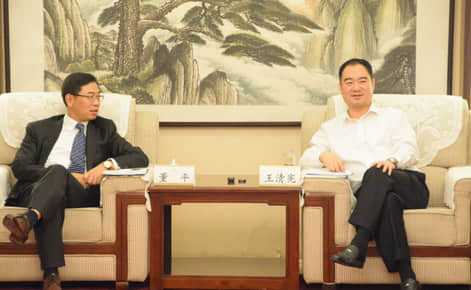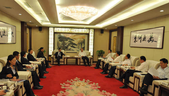 2013年10月10日,集團(tuán)總裁董總攜總裁助理兼制造事業(yè)部總經(jīng)理張送等集團(tuán)領(lǐng)導(dǎo)赴山西省運(yùn)城市絳縣參觀考察,運(yùn)城市市長王清憲親切會見董總一行。