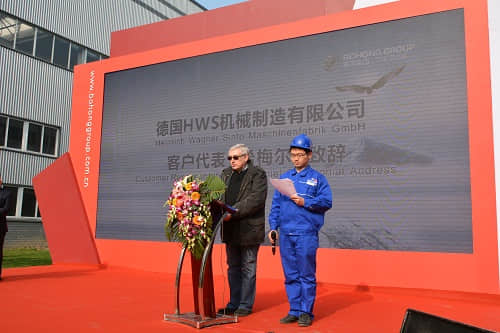 德國HWS機械制造有限公司希梅爾先生代表設備商向項目的順利竣工表示熱烈的祝賀。致辭中,希梅爾先生介紹了代表當今造型設備、造型機械及現(xiàn)代化高壓造型機制造技術領導者的德國HWS公司,介紹了好圣選用HWS公司造型機的優(yōu)勢,對好圣二期的設備優(yōu)勢、人才優(yōu)勢、人氣優(yōu)勢給予了高度贊揚。