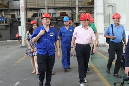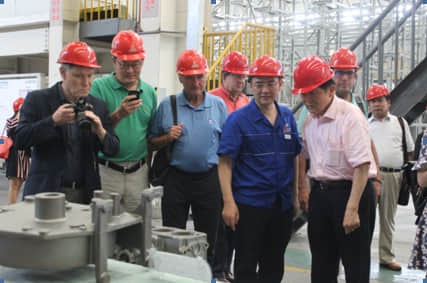 代表團一行參觀了好圣工廠生產(chǎn)線。在好圣二廠生產(chǎn)車間,講解員詳細介紹了美國應(yīng)達中頻感應(yīng)熔煉系統(tǒng)、德國KW水平有箱多觸頭靜壓造型線、德國HWS水平有箱多觸頭靜壓造型線、德國愛立許混砂系統(tǒng)等國際一流生產(chǎn)設(shè)備,并對德國KW、HWS線2017年產(chǎn)能計劃及未來前景進行了說明;在好圣一廠生產(chǎn)車間,代表團參觀了丹麥DISA造型生產(chǎn)線和日本新東造型生產(chǎn)線。雖正值周日造型線例行保養(yǎng),但工廠生產(chǎn)現(xiàn)場管理規(guī)范有序,制芯及清理區(qū)域工作有條不紊,工人們正為本月訂單交付而加班沖量。作為當年波鴻并購?fù)箍ㄌ氐囊娮C人,加拿大聯(lián)邦參議員胡子修先生是波鴻集團的老朋友,此次隨團再次參觀考察好圣工廠,感觸頗深,他表示,四年前他第一次到訪公司時,好圣一廠還外于爬坡階段,好圣二廠剛開始修建,但現(xiàn)在好圣一廠已是滿負荷生產(chǎn)、車間一片繁忙,好圣二廠已竣工投產(chǎn)、規(guī)模宏大,好圣的變化真是快;代表團其他成員在參觀過程中,還不斷地詢問關(guān)于工廠生產(chǎn)流程、設(shè)備保養(yǎng)、7S現(xiàn)場管理以及智能制造項目情況,紛紛表示對波鴻集團在加拿大的投資和發(fā)展充滿信心。