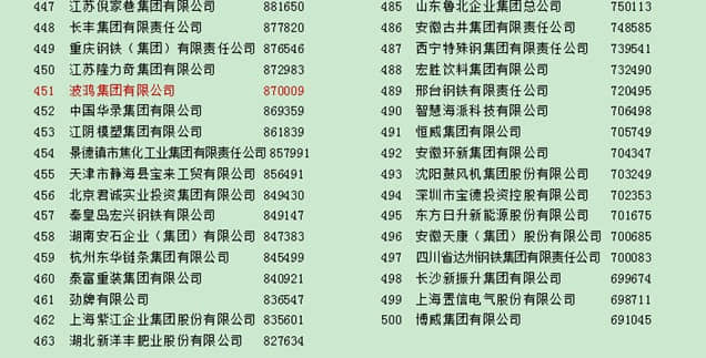 本屆論壇評選出“2017年中國企業(yè)500強”、“中國制造業(yè)500強”和“中國服務業(yè)500強”三大榜單,波鴻集團再度上榜,位列中國制造業(yè)500強第451位,排名比2016年的486位提升了35位,贏得了社會認可。