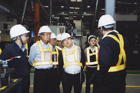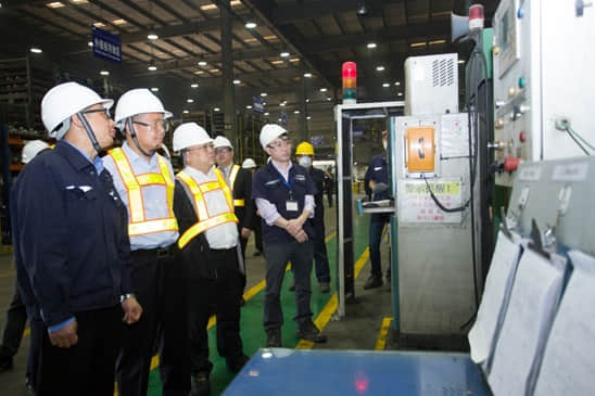 在工廠車間一線,威斯卡特武漢工廠總經(jīng)理湯慶生向趙耀中行長一行重點介紹了GM1.5渦輪殼、D35渦輪兩條生產(chǎn)線的工藝特點、生產(chǎn)能力、產(chǎn)品客戶情況等,并引領(lǐng)客人參觀了工廠制芯車間、冷芯車間、砂芯組裝區(qū)、造型線、澆注區(qū)域、模具車間、機加車間;在參觀生產(chǎn)現(xiàn)場過程中,湯慶生還向客人詳細介紹了產(chǎn)品工藝流程。