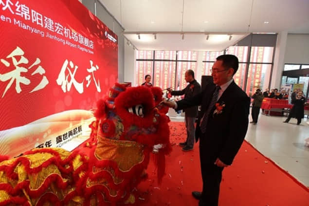 隨后,費(fèi)犇、楊華勇與波鴻實(shí)業(yè)黨委副書(shū)記胡能勇、行政總監(jiān)陳斌、汽車(chē)事業(yè)部副總經(jīng)理李重遠(yuǎn)一起為綿陽(yáng)建宏機(jī)場(chǎng)旗艦店喬遷剪彩;費(fèi)犇、楊華勇共同為瑞獅點(diǎn)睛,祝愿綿陽(yáng)建宏機(jī)場(chǎng)旗艦店喬遷大吉、生意興隆。