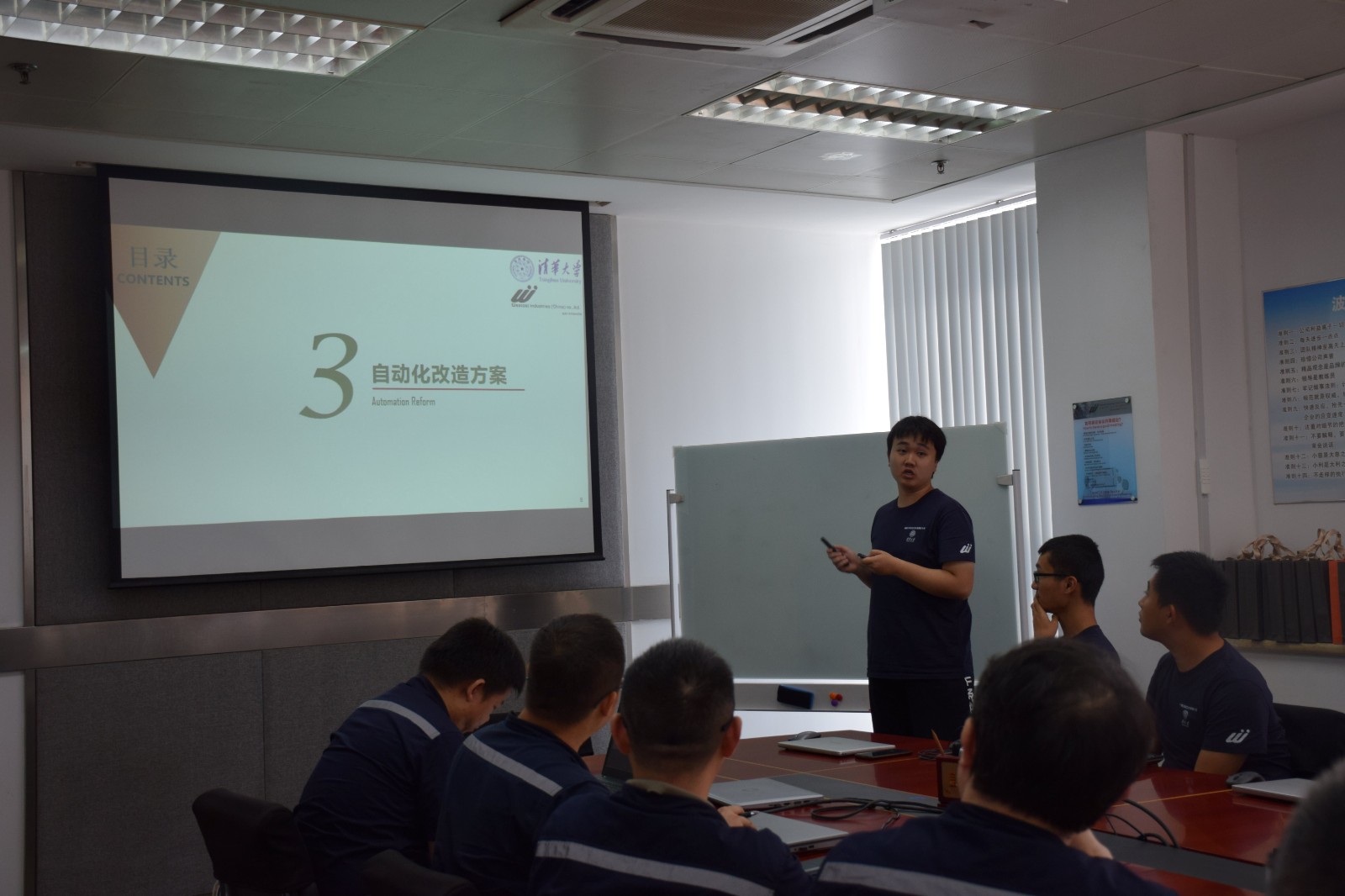 結(jié)業(yè)儀式上,三組實(shí)習(xí)學(xué)生對(duì)相關(guān)課題開展情況及研究成果進(jìn)行了匯報(bào)展示,對(duì)工廠現(xiàn)狀進(jìn)行了充分分析,對(duì)設(shè)備和技術(shù)創(chuàng)新提出了新的見解。