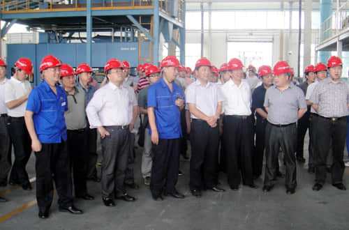 5月17日下午,鹽亭縣縣委書記丁湘,縣委副書記、縣長賴俊,縣人大常委會(huì)主任王子安,縣政協(xié)主席李周全率領(lǐng)縣四套班子和鹽亭工業(yè)領(lǐng)導(dǎo)小組成員及507項(xiàng)目指揮部成員來我公司考察。集團(tuán)公司常務(wù)副總裁楊華勇、制造事業(yè)部總經(jīng)理萬濤陪同。