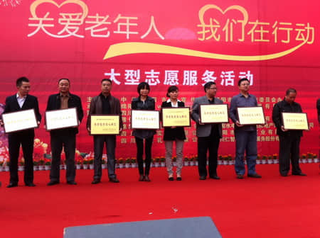 歡歌如海,人流如潮。一聲聲問候祝福,一個個助老活動,匯聚成愛心與濃情,在飄香的廣場傳遞,在老人的心間蕩漾。10月20日上午,綿陽市敬老愛老大型志愿服務(wù)活動啟動儀式在鐵牛廣場隆重舉行,來自綿陽城區(qū)的1200余名老年人與20余家愛心單位和100余名志愿者歡聚一堂,把綿陽市“敬老月”活動推向了高潮。此次活動由市委宣傳部、市老齡委辦公室主辦,綿陽新聞網(wǎng)承辦。集團(tuán)公司黨工團(tuán)負(fù)責(zé)人兼團(tuán)委書記張麗女士蒞臨此次活動,并代表公司上臺領(lǐng)取了“尊老敬老愛心單位”的獎牌。公司團(tuán)委攜波鴻藝術(shù)團(tuán)成員和“一縷光”青年志愿者參加了此次活動。