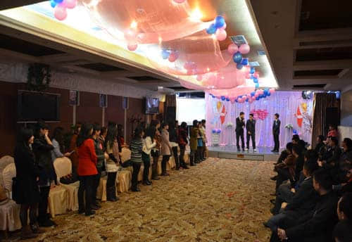 為了給集團(tuán)未婚青年搭建一個(gè)全新的交流溝通平臺(tái),幫助青年男女拓寬交友渠道。11月11日,我集團(tuán)聯(lián)同綿陽市第三人民醫(yī)院在綿陽市世紀(jì)銀座金色大廳共同舉辦了“青春有約、緣定今宵”的聯(lián)誼活動(dòng)。我集團(tuán)工會(huì)副主席張麗女士、綿陽市第三人民醫(yī)院工會(huì)主席鐘偉、副主席林園等領(lǐng)導(dǎo)出席本次聯(lián)誼活動(dòng)并致詞。