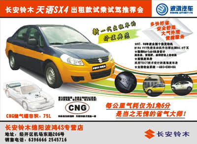 天語SX4作為在中國首發(fā)的鈴木公司全球戰(zhàn)略車型,由享譽全球的汽車設(shè)計大師喬治·亞羅和鈴木工程師共同開發(fā)。配備鈴木公司目前最先進的M16A VVT發(fā)動機,具有充沛的動力和高度的機動性,能夠滿足出租車市場的需要;超低的燃油消耗,符合國III標準的排放,響應(yīng)國家節(jié)能減排的號召,對建設(shè)環(huán)保型城市也具有非常積極的意義。另外,天語 SX4 90km/h等速油耗為5.6L/100km,綜合工況油耗也僅為7.2L/100km,良好的燃油經(jīng)濟性再配備以CNG雙燃料系統(tǒng),可有效降低出租車的運營成本費用。