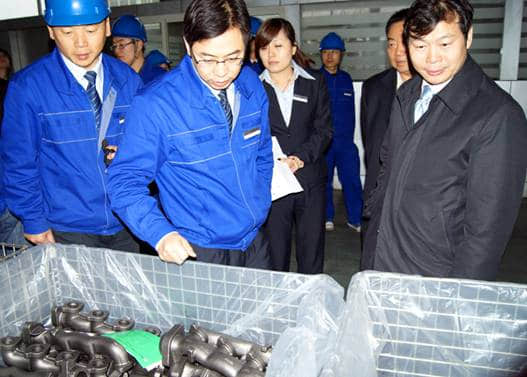 王中一行在董總帶領(lǐng)下,聽取了好圣項目介紹,深入機(jī)加車間、鑄造車間實地查看。聽介紹、看現(xiàn)場、問情況,王中行長對好圣項目定位高、起點高、前景廣表示充分肯定。對好圣項目目前投產(chǎn)運營取得的突出成績,給予了高度評價。他表示,好圣項目前景廣闊,潛力巨大,極具優(yōu)勢,將是銀企合作的優(yōu)勢平臺。
