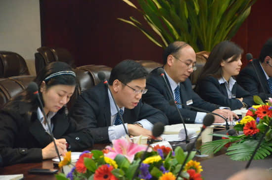 集團總裁董平在座談會中向農行領導介紹集團公司