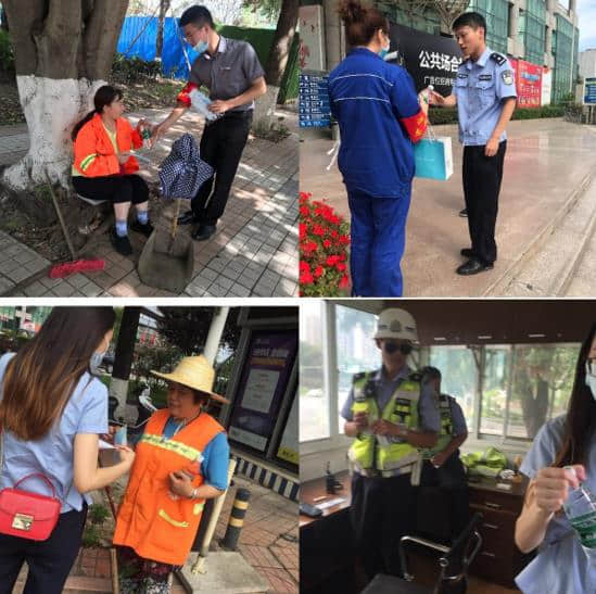 活動(dòng)中,志愿者們還對(duì)車(chē)站附近的環(huán)衛(wèi)工人和交警等工作人員進(jìn)行了夏日送清涼活動(dòng),贈(zèng)送了防暑用品和礦泉水以及對(duì)表達(dá)了對(duì)他們的敬意。