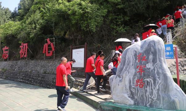 在莊嚴(yán)肅穆的飛龍山公祭廣場(chǎng),全體團(tuán)青年一起奏唱《國(guó)歌》,傾聽飛龍山紅軍紀(jì)念園的情況介紹,并向烈士們鞠躬致敬、敬獻(xiàn)鮮花。隨后大家沿著長(zhǎng)長(zhǎng)的石梯上行,重走紅軍路,尋著紅12師34團(tuán)在飛龍山戰(zhàn)斗的印跡,瞻仰紀(jì)念碑林、參觀飛龍山蘇維埃政府舊址、紅軍戰(zhàn)壕等地,攀爬瞻思梯,觸摸歷史時(shí)空,追憶紅色故事,感悟初心使命,汲取前行力量,感念著革命先烈們奮勇戰(zhàn)斗、不畏犧牲的光輝歲月。