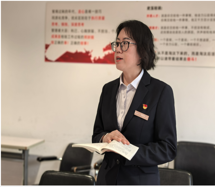 活動現(xiàn)場,大家依次分享自己的“寶藏書籍”。黨支部書記陽靜分享的《終生成長》從心理學角度出發(fā),探討了成長型思維對個人發(fā)展的重要性。她結(jié)合自身工作經(jīng)歷,生動地闡述了如何突破思維定式,在面對工作中的困難和挑戰(zhàn)時保持積極進取的心態(tài)。年輕黨員溫莉莎分享《小日常大奇跡》,她以書中一個個平凡而溫暖的故事為切入點,講述了如何在日常工作和生活中發(fā)現(xiàn)美好、傳遞正能量。黨員魏翠君分享《鋼鐵是怎樣煉成的》時,著重解讀了主人公保爾?柯察金的堅韌品質(zhì)和崇高精神。她深情地說,“保爾的精神值得我們每一位黨員學習。在工作中,我們也會遇到各種困難,但只要我們堅定信念,像鋼鐵一樣百折不撓,就沒有克服不了的難關(guān)。”隨后,老黨員嚴常軍分享的《紅星照耀中國》將活動氛圍推向了高潮。他帶領(lǐng)大家重溫了那段波瀾壯闊的革命歷史,講述了中國共產(chǎn)黨和紅軍戰(zhàn)士們在艱苦環(huán)境下為實現(xiàn)理想信念而不懈奮斗的感人事跡。他激動地說:“這本書讓我深刻感受到了革命先輩們的堅定信仰和無畏精神。作為新時代的黨員,我們要傳承紅色基因,從革命歷史中汲取前行的力量,在平凡的崗位上堅守初心,為黨的事業(yè)貢獻自己的力量。”